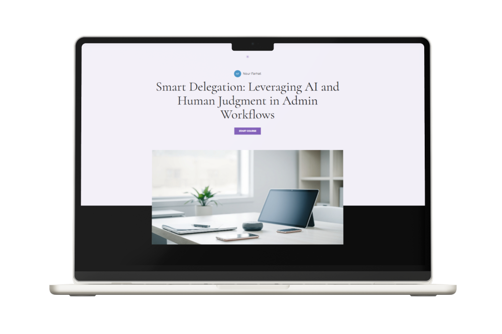 Portfolio Dive deeper into my work! Smart Delegation: Leveraging AI and Human Judgment in Admin Workflows VIEW PROJECT Practical Time Management Strategies for Corporate Professionals VIEW PROJECT